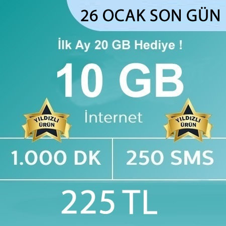 10 GB İNTERNET + 250 SMS + 1000 DK